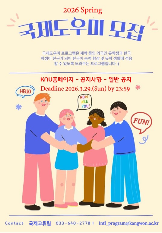[KNU 글로벌 메이트] 2026학년도 1학기 국제도우미 모집 안내