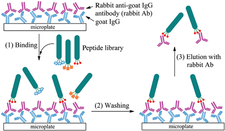 - 항체를 대신할 수 있는 분자 인식 도구의 하나인 펩타이드 문고(peptide library) 기술을 이용하여 암세포, 병원성 박테리아, 질병 관련 단백질, cyclodextrin 고분자 등에 결합할 수 있는 펩타이드들을 개발하였습니다. 이 펩타이드들은 항암제 전달, 박테리아 검출, 효소 활성 억제, 단백질 고정 등에 응용됩니다.