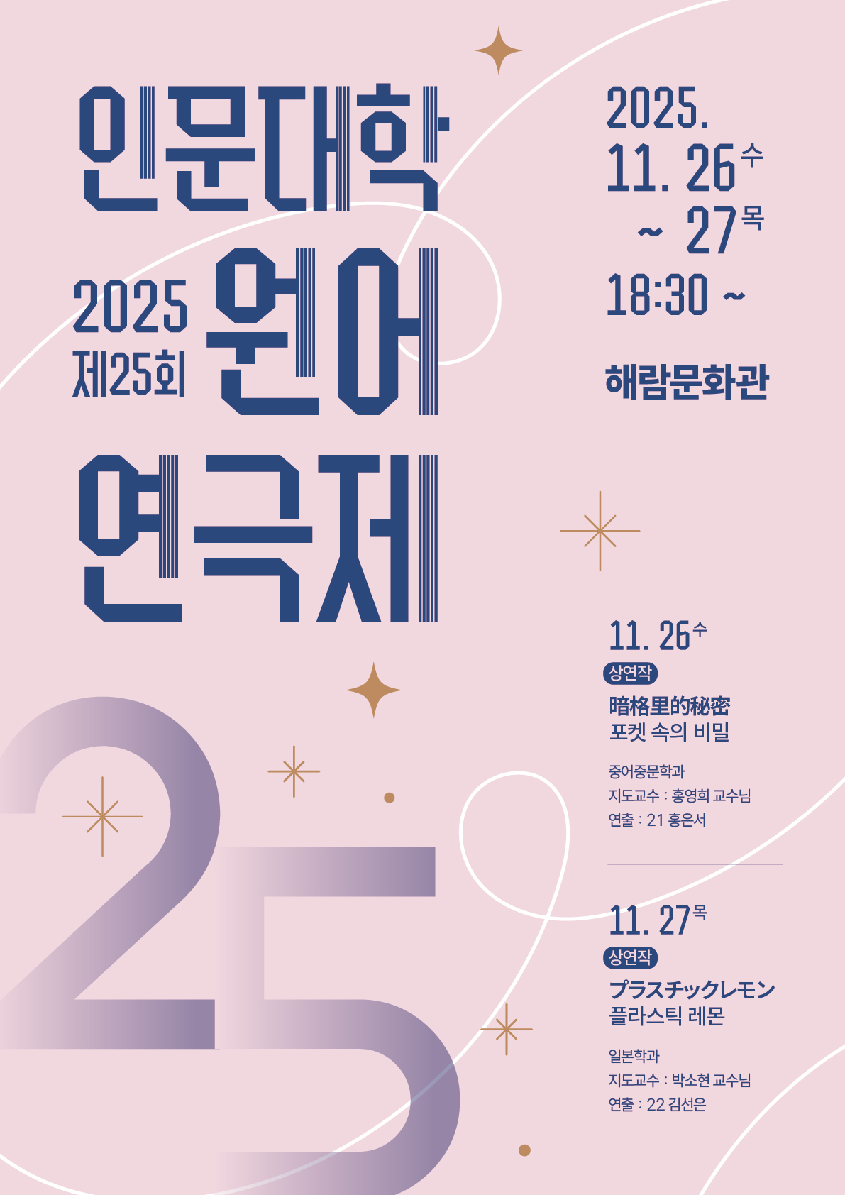 fnctId=bbs,fnctNo=737 [행사] 제25회 인문대학 연극대회 - 플라스틱 레몬(プラスチックレモン) 작성일 2025.11.25 작성자 엄태봉 조회수 945 첨부파일 첨부파일이(가) 없습니다.