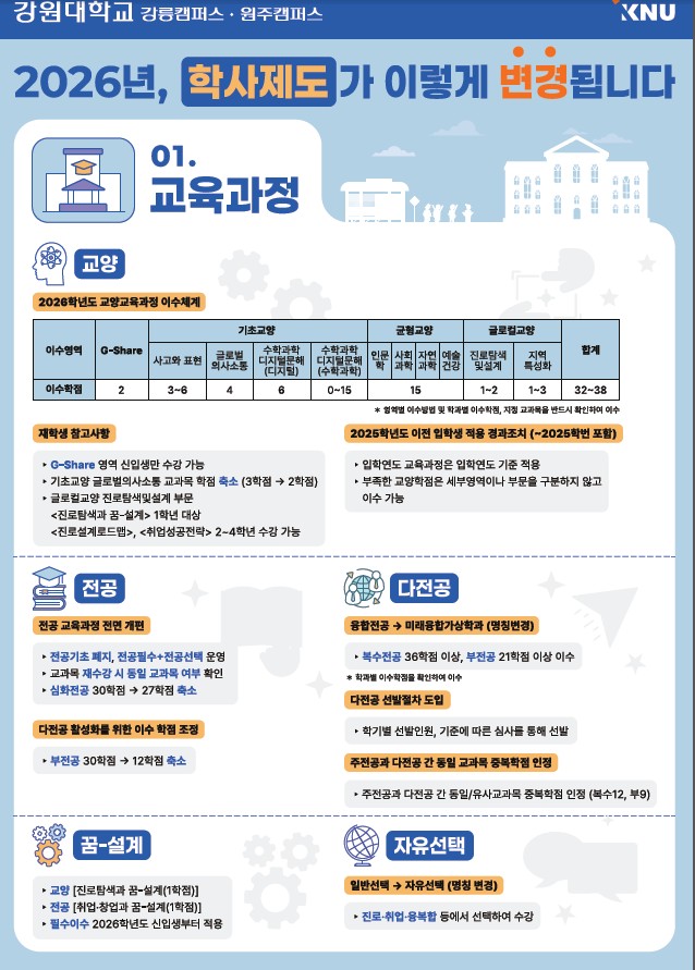 fnctId=bbs,fnctNo=596 [공지]2026년 통합 강원대학교 교육과정및 학사제도 안내 작성일 2026.02.27 작성자 최수진 조회수 668 첨부파일 2026년 통합 강원대학교 교육과정및 학사제도 안내.pdf